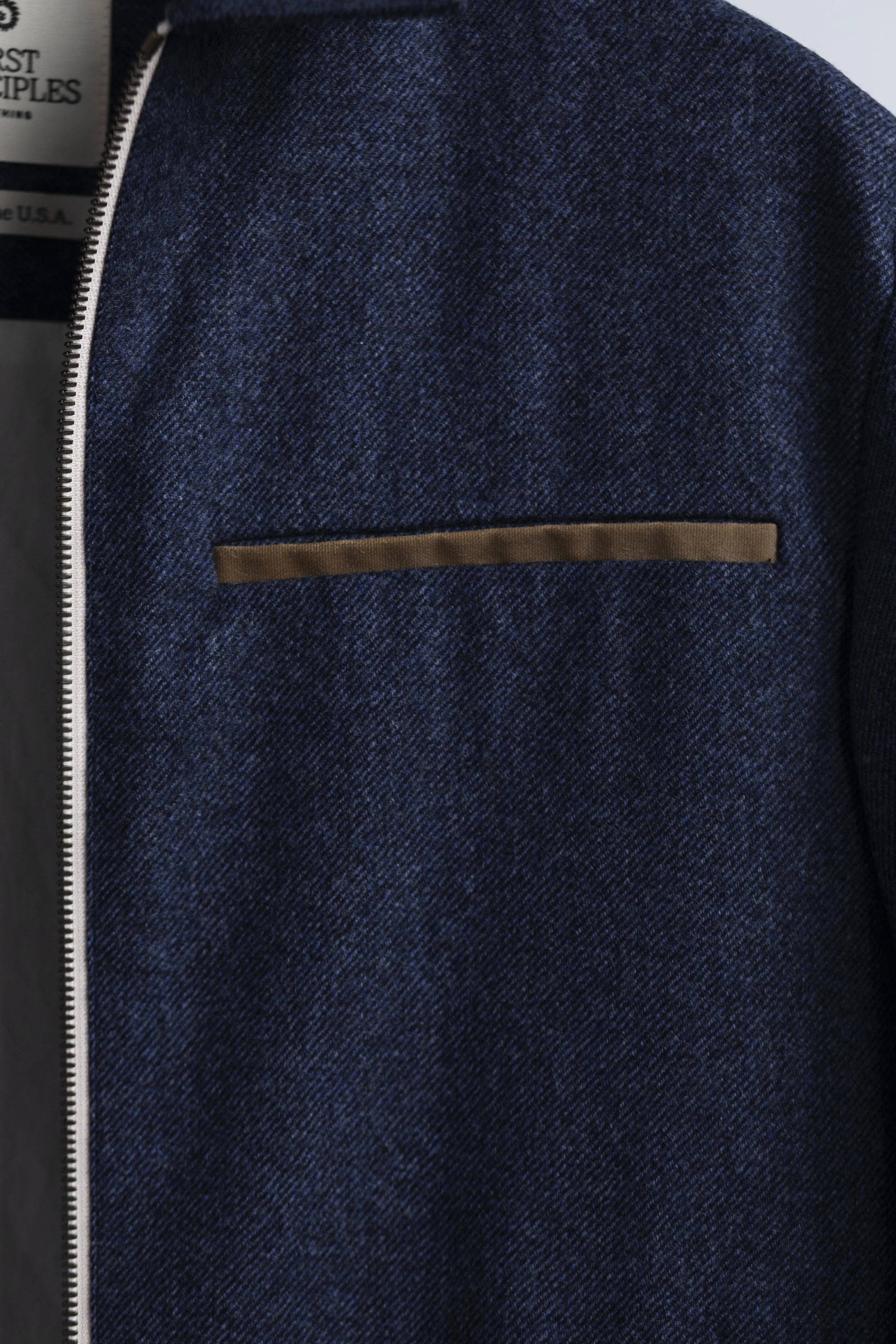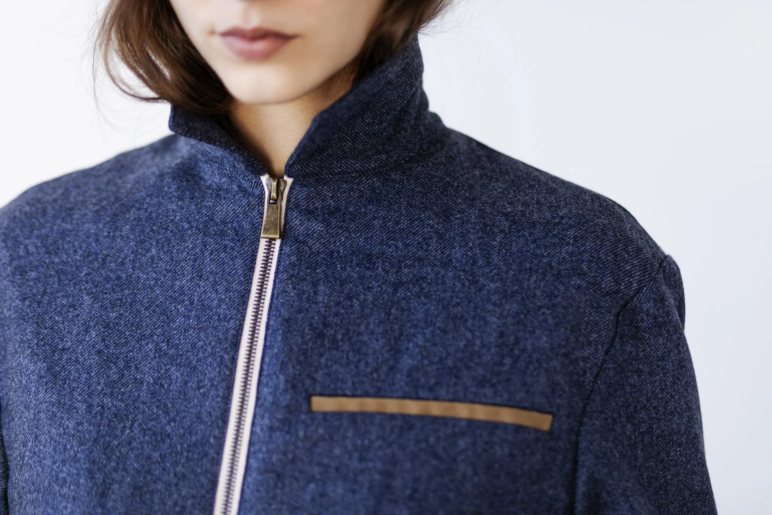 Combining an 11 oz denim with a spectacular, chunky basketweave fabric milled in South Carolina from domestic cotton, this jacket features a poplin lining, deep hidden front pockets, an internal denim pocket, and wrist cinches to play around with oversized styling looks. To be honest, we have yet to find a person that doesn't look incredible in this piece, and we hope you're just as proud of it as we are.